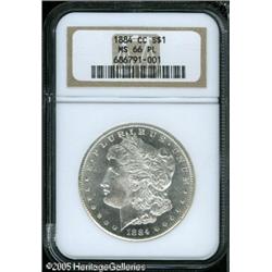 <B>1884-CC<img border='0' src='http://www.heritagecoins.com/images/star.gif' width=10 height=10>$1 MS66 Prooflike NGC.</B></I> This is a sensational example with brilliant and frosty surfaces and bright snow-white color. The fields are reflective with light cameo contrast. Lot:10157