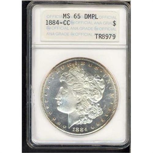 <b>1884-CC Morgan Dollar. ANACS graded MS65 DMPL.</b> A lustrous example that has snow white brilliance whose devices are capped in dazzling frost while the fields on either side stream with prooflike reflection. Made with technical exactness throughout, as seen in the photos, but what is even more impressive is if the coin is examined first-hand under magnification. Time is short. When the hour arrives to bid this one away from the competitors at the sale, we're sure each and every bidder, as he looks around the room, will be thinking to himself, "hadn't you better get out of here, don't you think?" But stand firm; place your bid and await the results <b>(PCGS # 97153)</b>