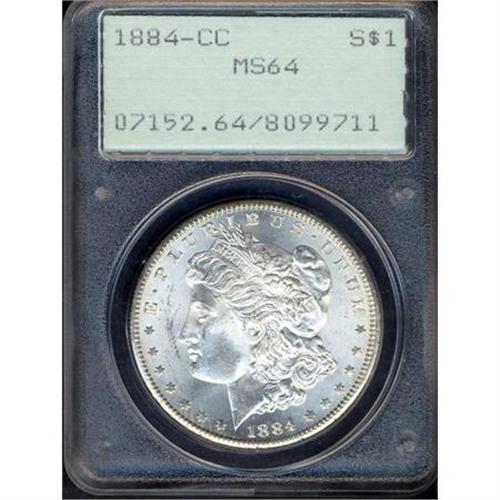 <b>1884-CC Morgan Dollar. PCGS graded MS64.</b> Very attractive silvery originality in the devices and fields. Some marks on the cheek and in the field to the left <b>(PCGS # 7152)</b>