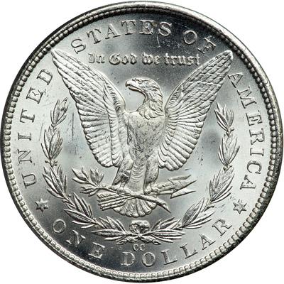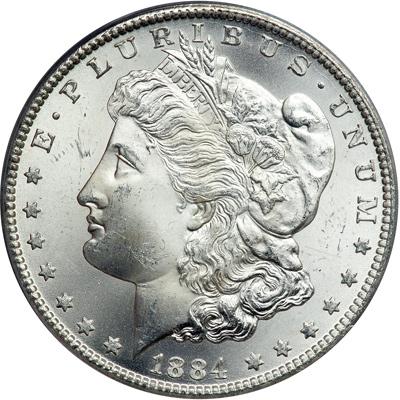1884-CC Morgan Dollar. PCGS graded MS-65. A nice white coin whose carthweel luster flies around the surface when the coin is tilted under a lamp (PCGS # 7152) .