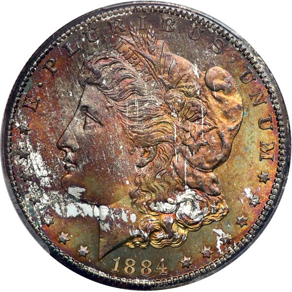 1884-CC Morgan Dollar. PCGS graded MS-66 PQ CAC Approved. Wonderful rich golden toning on both sides. Prooflike surfaces as well (PCGS # 7152) .