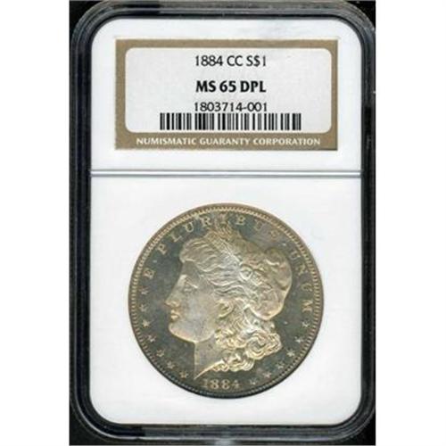 <b>1884-CC Morgan Dollar. NGC graded MS65 DPL.</b> An extremely attractive coin displaying crystal-like reflective fields, with heavy frosting on the devices. Original toning <b>(PCGS # 97153)</b>