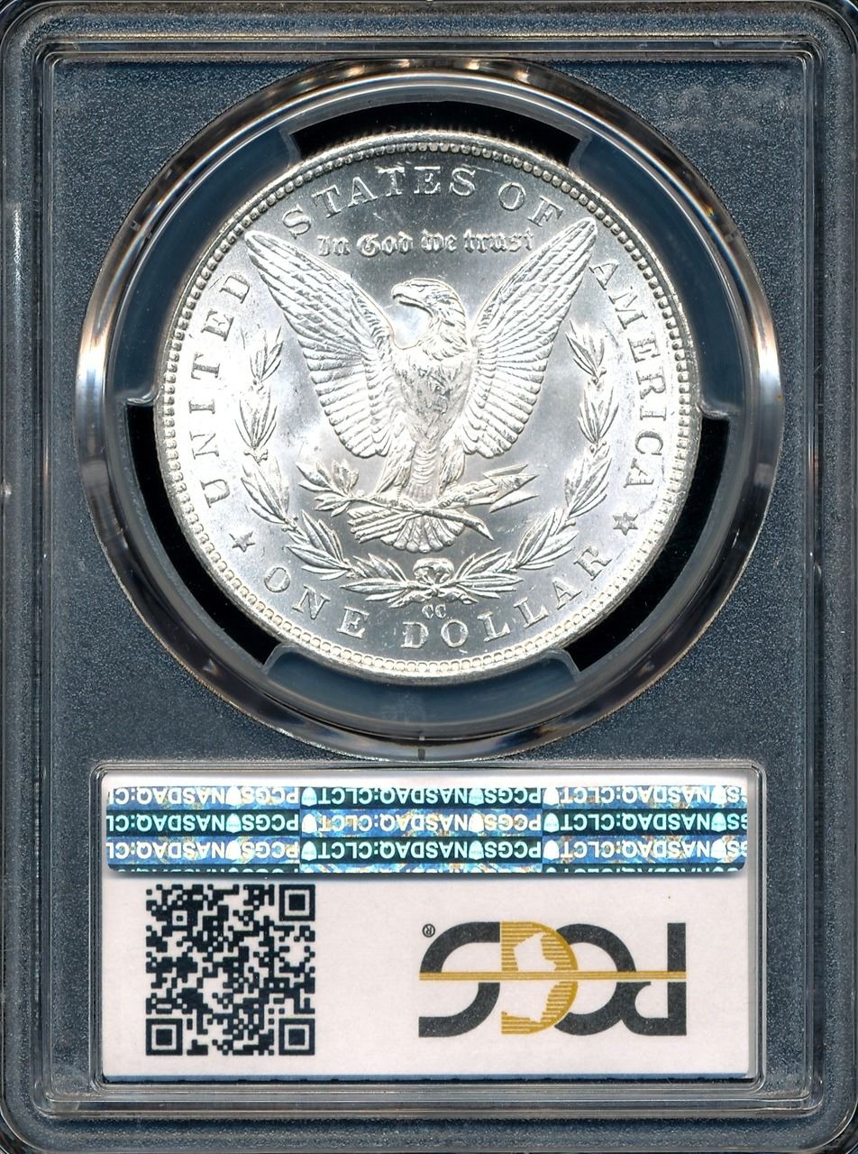 This piece is dominated by frosty surfaces and blazing cartwheel luster. This coin is blast white with spectacular eye appeal.