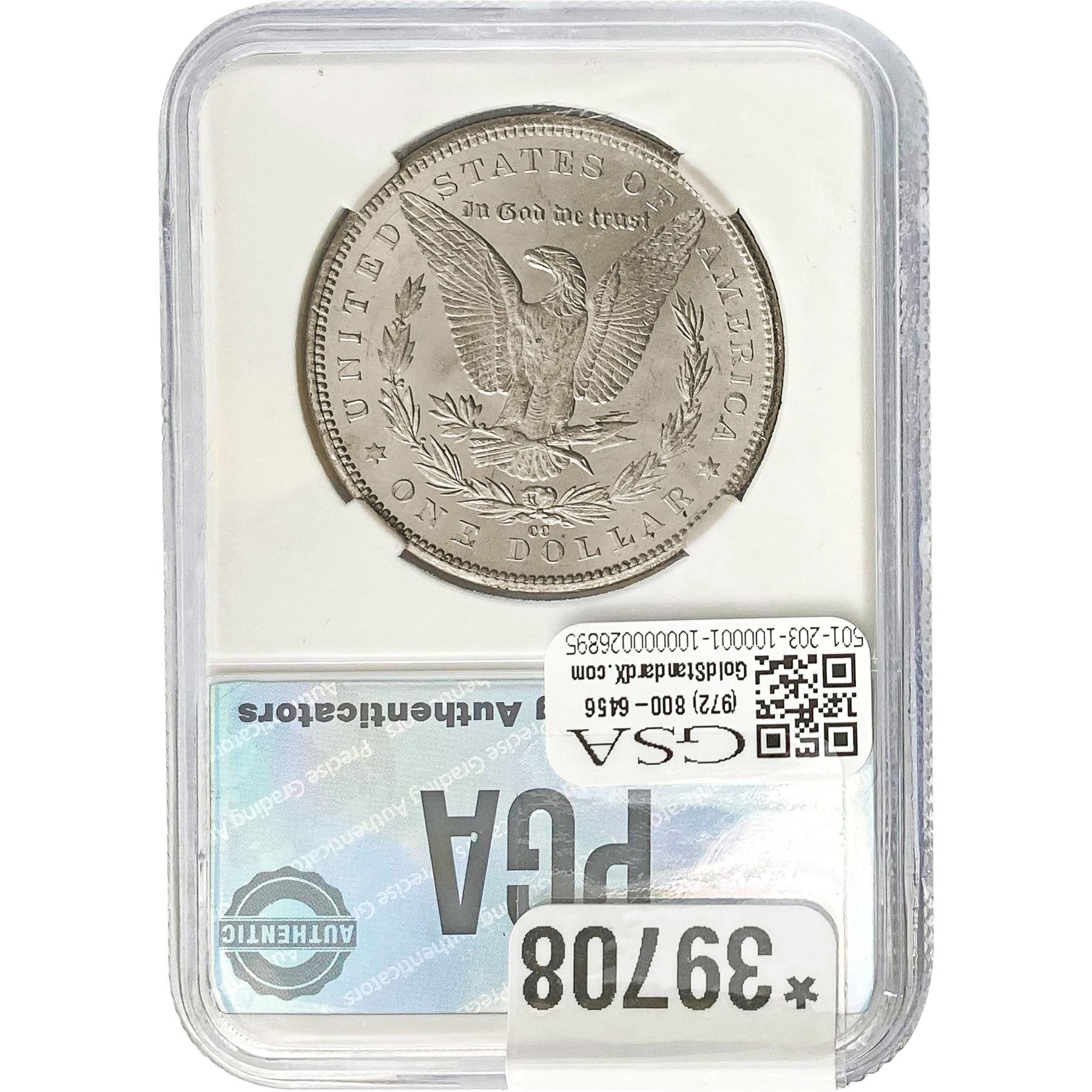 e. Coins sold referencing a third-party grading service are sold “AS IS” without any express or implied warranty, except for a guarantee by GSA that they are genuine. Removal or alteration of the holder, voids all of Bidder’s claims concerning that Product. Certain warranties may be available from the grading services and Bidders are referred to them for further details: Numismatic Guaranty Corporation (NGC), PO Box 4776, Sarasota, FL 34230, www.ngccoin.com/services/writtenguarantee.asp; Professional Coin Grading Services (PCGS), PO Box 9458, Newport Beach, CA 92658, www.pcgs.com/guarantee.html; ANACS, 6555 S. Kenton St., Ste. 303, Englewood, CO 80111; and Independent Coin Grading Co. (ICG), 7901 East Bellview, Ave., Suite 50, Englewood, CO 80111.