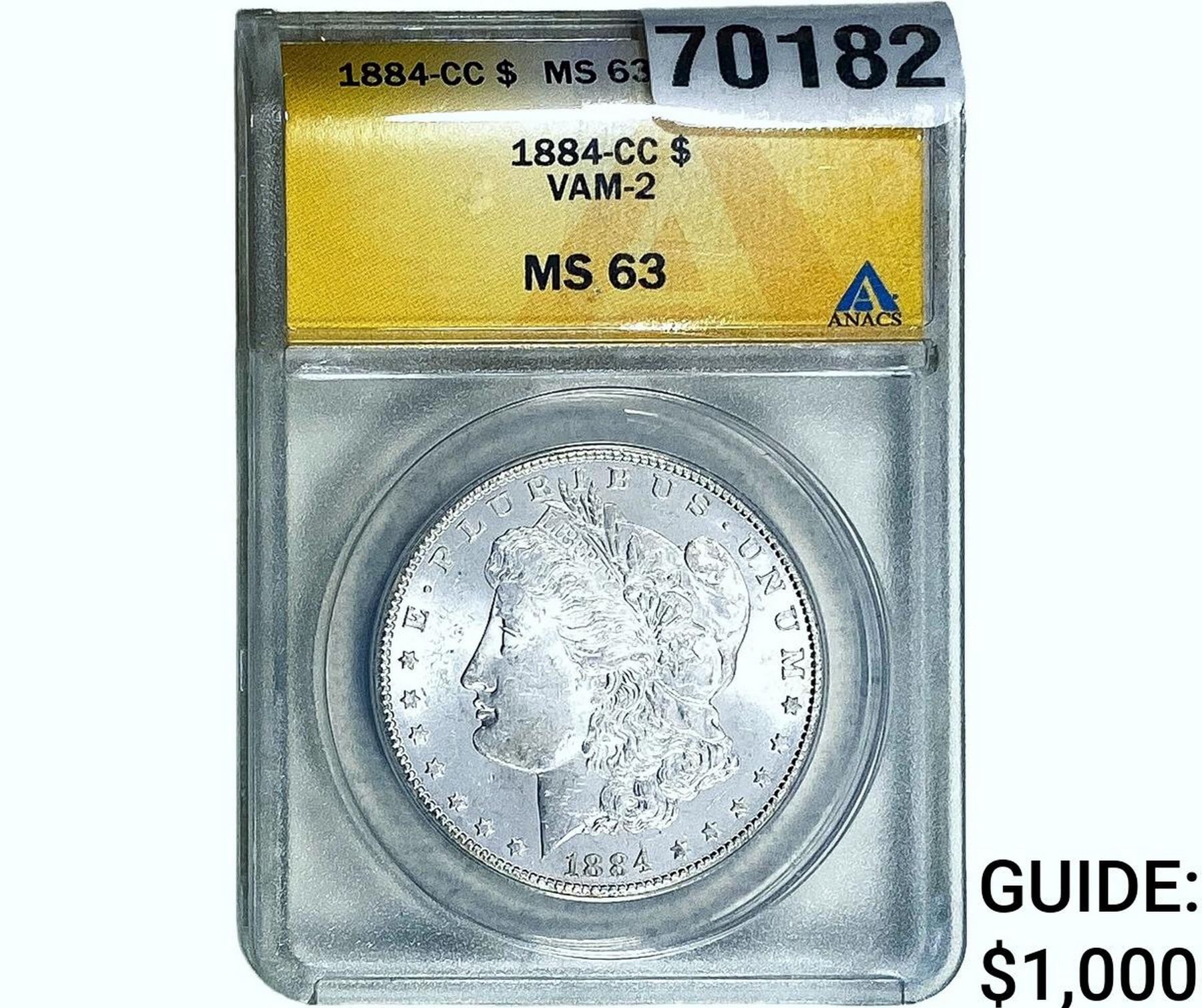 1884-CC Morgan Silver Dollar ANACS MS63 VAM-2