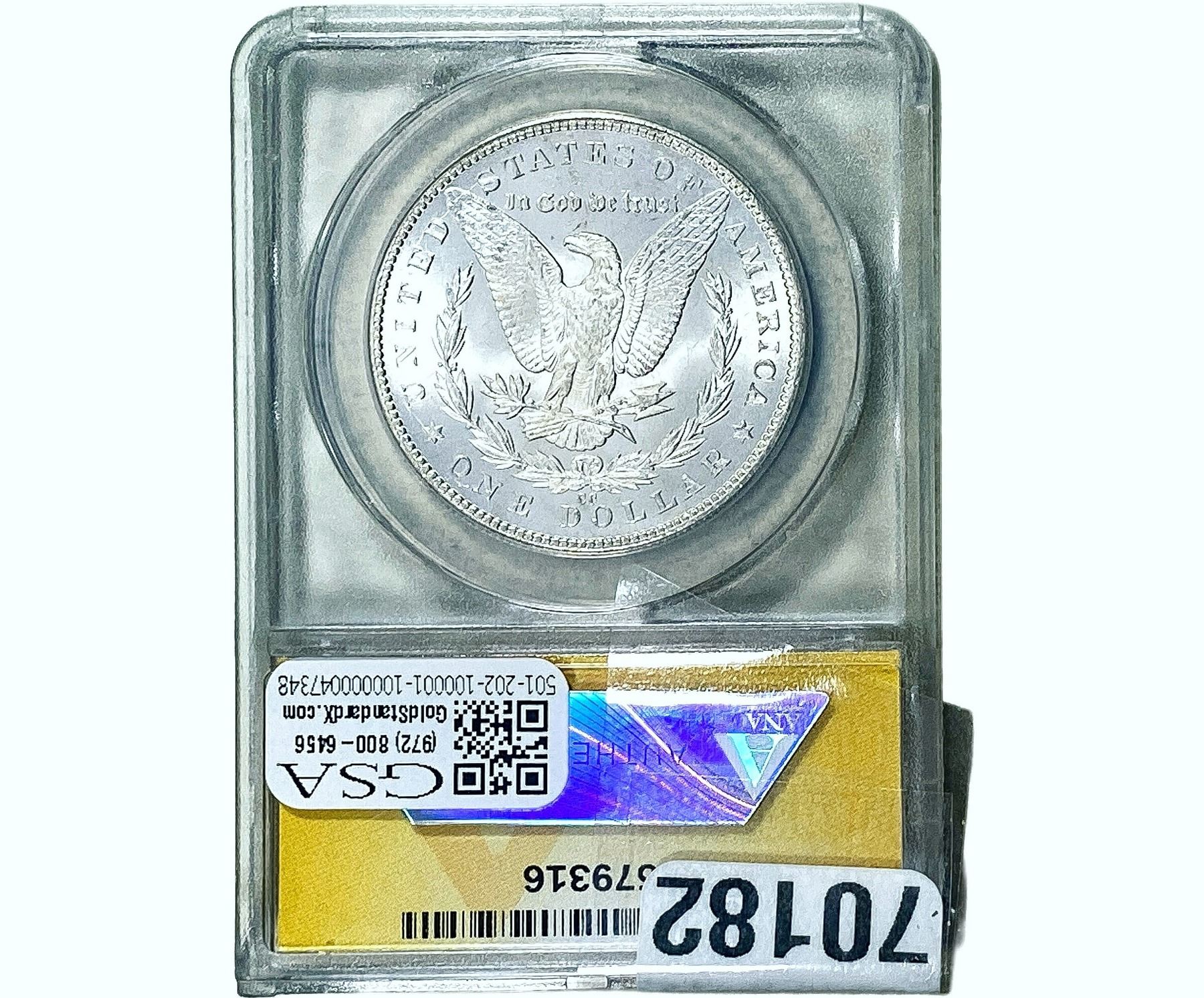 COINS AND CURRENCY LISTED IN GSA’S CATALOG AS GRADED AND ENCAPSULATED BY PCGS, NGC, ANACS, ICG, PCGS CURRENCY, PMG, PCGS BANKNOTE GRADING, CMC OR ANY OTHER THIRD-PARTY GRADING SERVICE ARE LIKEWISE SOLD “AS-IS” EXCEPT AS EXPRESSLY SET FORTH HEREIN. ALL THIRD-PARTY GRADING SERVICE GUARANTEES, INCLUDING AUTHENTICITY, ARE THE SOLE RESPONSIBILITY OF THE THIRD-PARTY GRADING SERVICE AND NOT WARRANTIES OR GUARANTEES OF GSA. BIDDERS SHOULD CONTACT THESE THIRD-PARTY GRADING SERVICES DIRECTLY WITH RESPECT TO ANY CLAIMS OR QUESTIONS THEY MAY HAVE CONCERNING THEIR GUARANTEES AND WARRANTIES. BIDDERS ACKNOWLEDGE AND AGREE THAT AUCTIONEER IS NOT BOUND BY OR LIABLE FOR ANY OPINION OR CERTIFICATION BY ANY THIRD-PARTY GRADING SERVICE. REMOVAL OF A PRODUCT FROM ITS PROTECTIVE CASING OR HOLDER OR ALTERATION OF ANY COIN HOLDER WAIVES ALL RIGHTS CONCERNING THE PRODUCT CONTAINED THEREIN.
