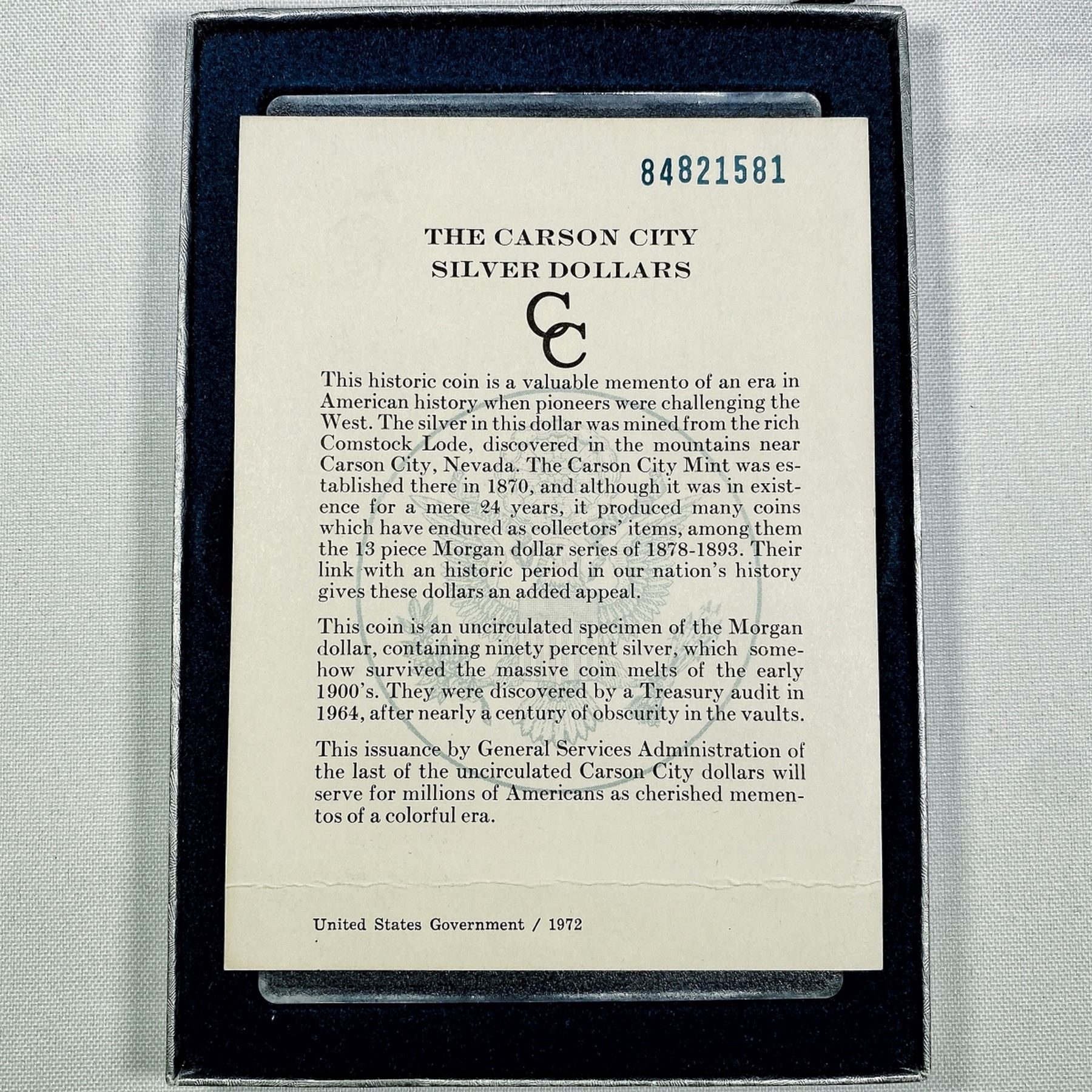 1884-CC Morgan Silver Dollar -BU GSA w/ Cert.