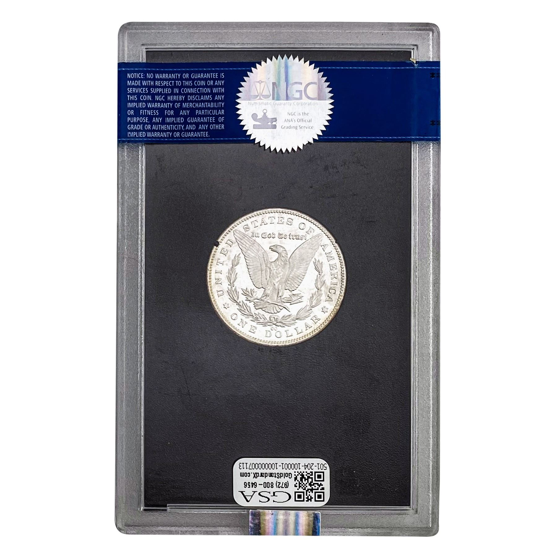 e. Coins sold referencing a third-party grading service are sold “AS IS” without any express or implied warranty, except for a guarantee by GSA that they are genuine. Removal or alteration of the holder, voids all of Bidder’s claims concerning that Product. Certain warranties may be available from the grading services and Bidders are referred to them for further details: Numismatic Guaranty Corporation (NGC), PO Box 4776, Sarasota, FL 34230, www.ngccoin.com/services/writtenguarantee.asp; Professional Coin Grading Services (PCGS), PO Box 9458, Newport Beach, CA 92658, www.pcgs.com/guarantee.html; ANACS, 6555 S. Kenton St., Ste. 303, Englewood, CO 80111; and Independent Coin Grading Co. (ICG), 7901 East Bellview, Ave., Suite 50, Englewood, CO 80111.