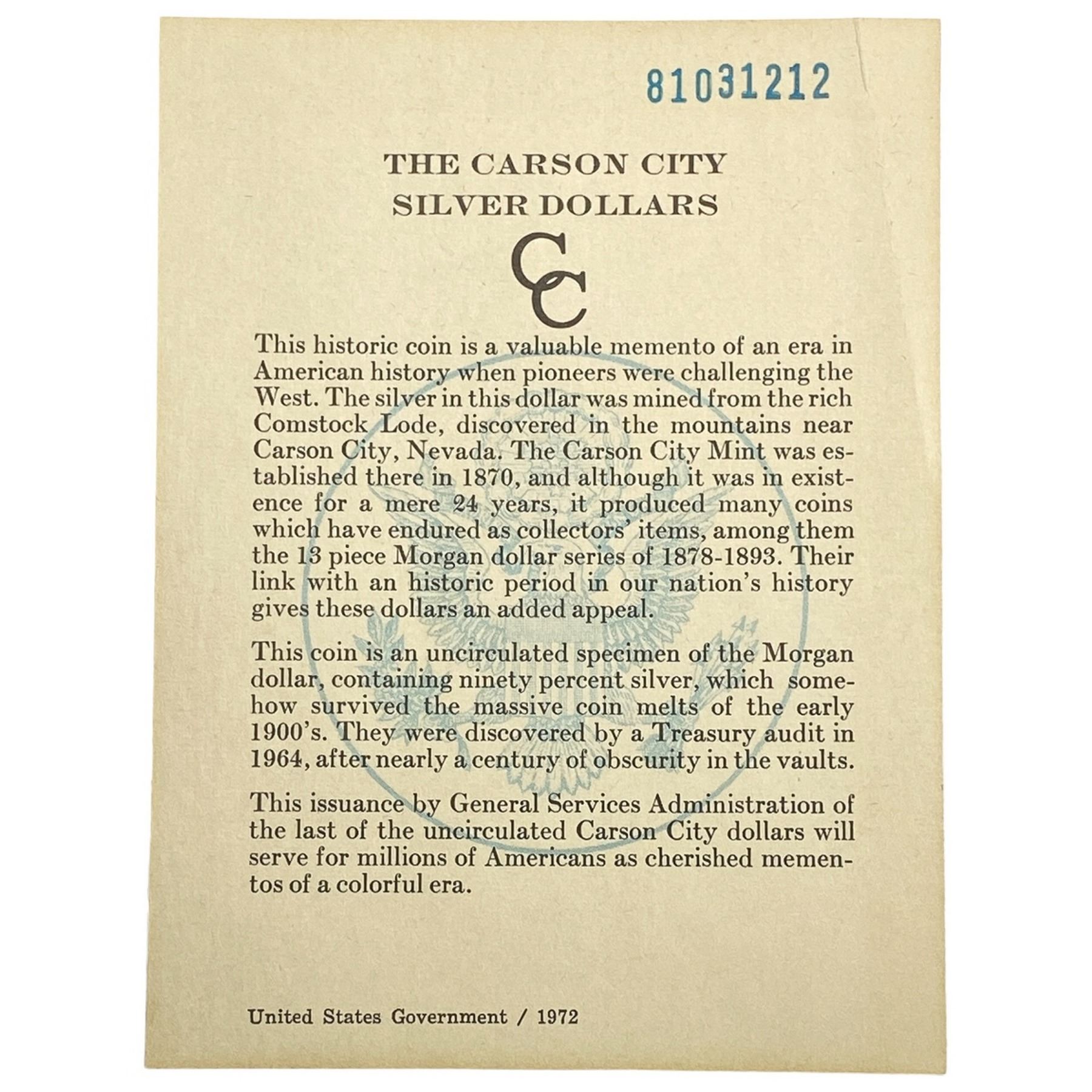 1884-CC Morgan Silver Dollar GSA UNCIRCULATED