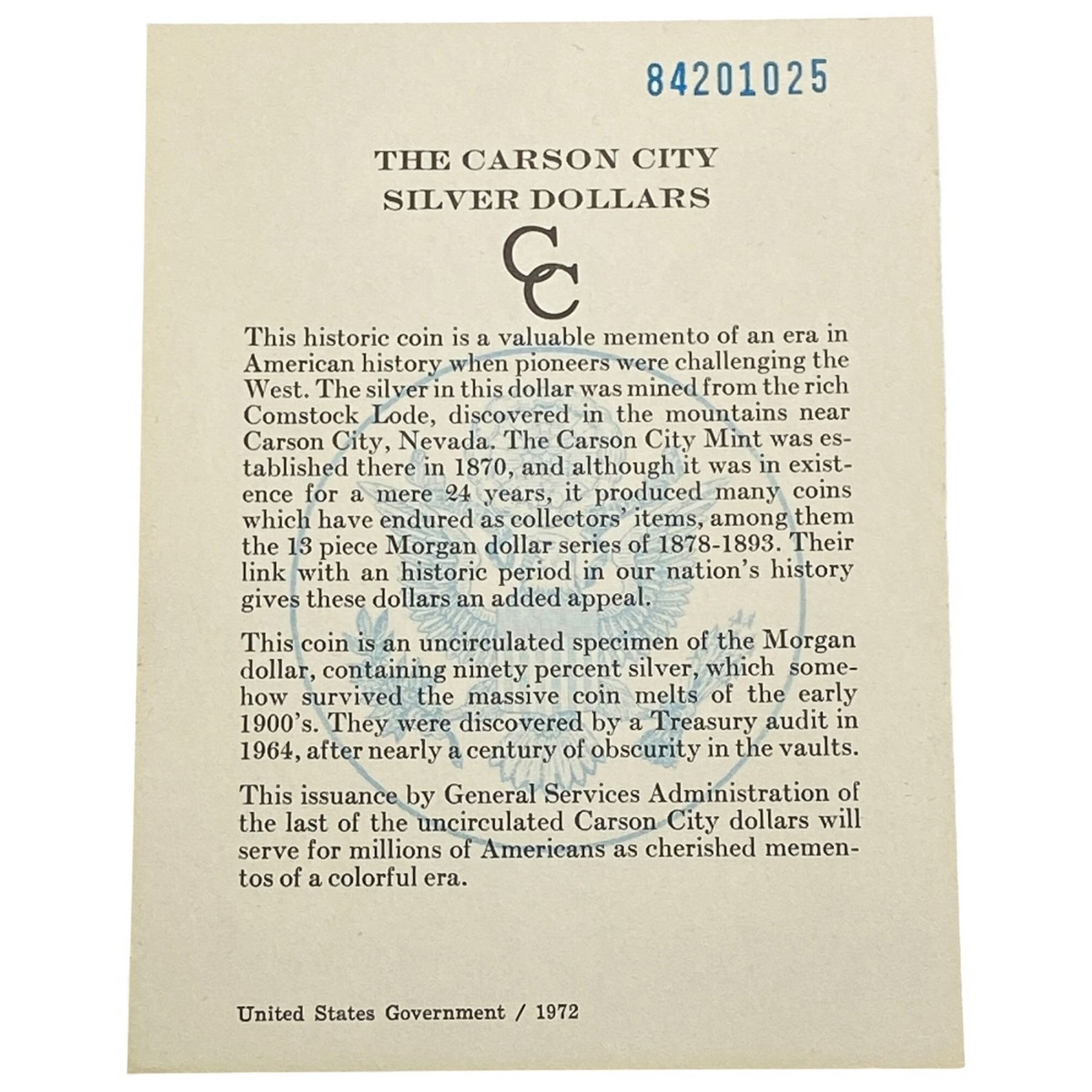 1884-CC Morgan Silver Dollar GSA UNCIRCULATED