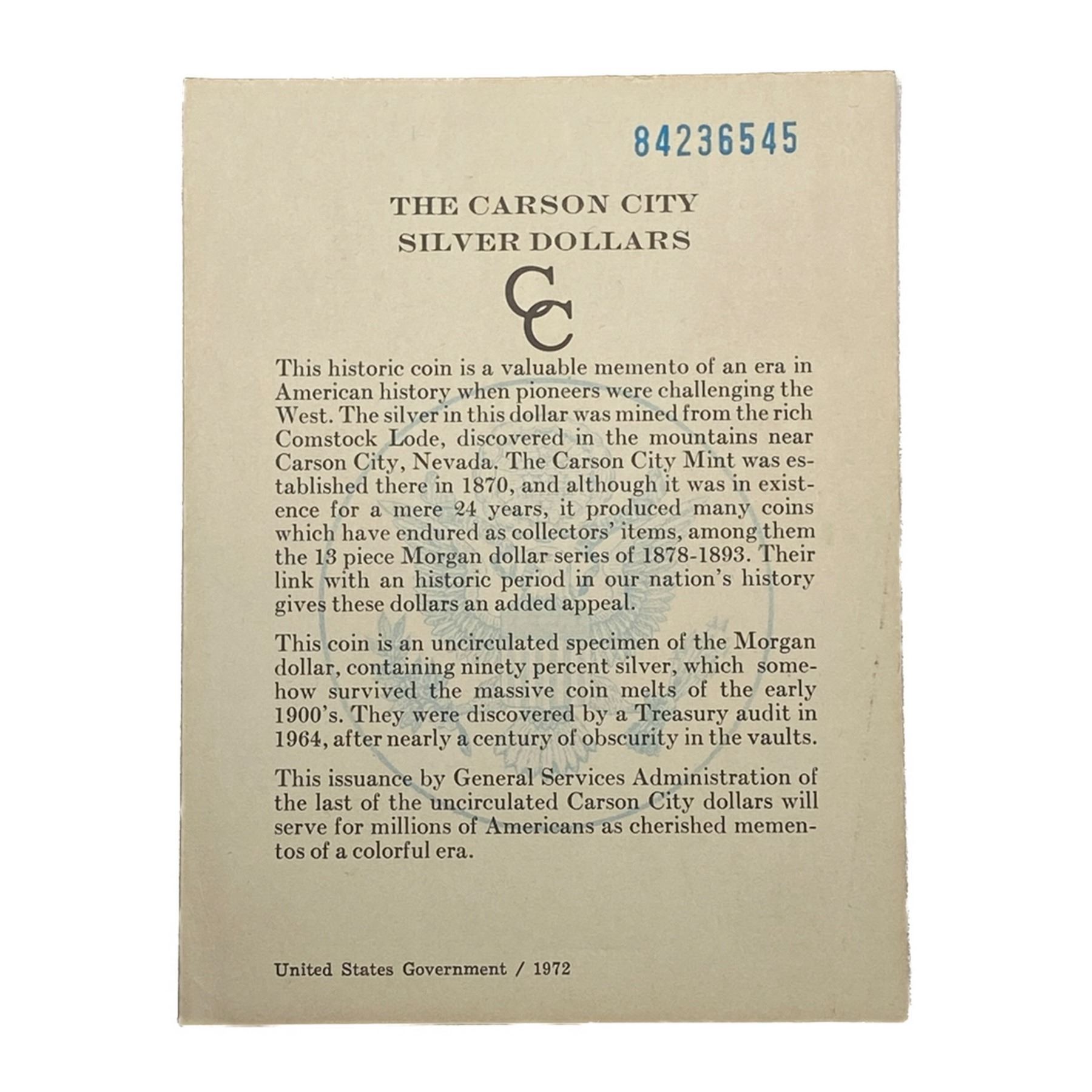 1884-CC Morgan Silver Dollar GSA UNC