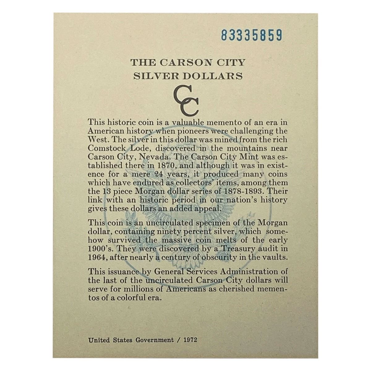 1884-CC Morgan Silver Dollar GSA UNC