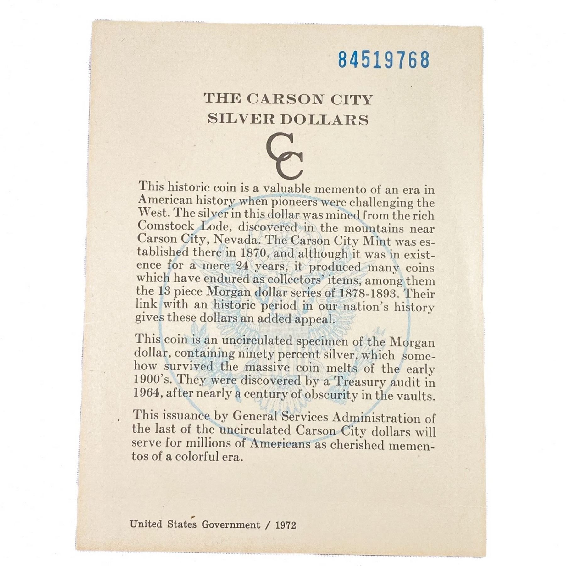 1884-CC Morgan Silver Dollar GSA