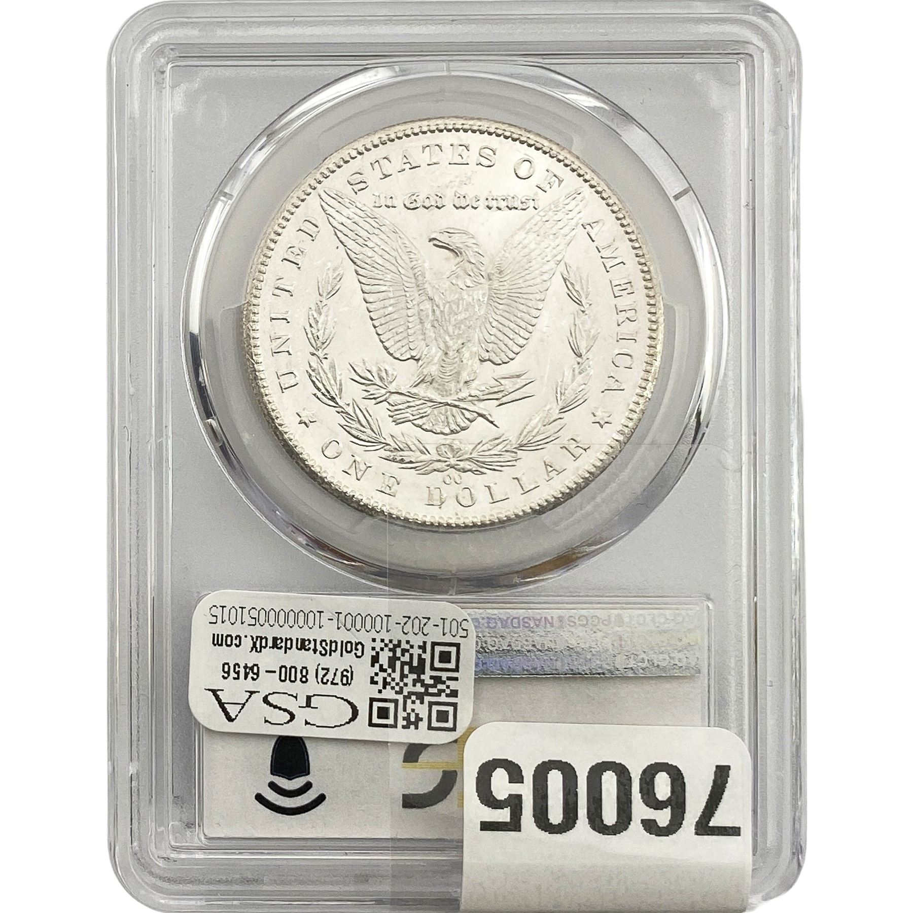 COINS AND CURRENCY LISTED IN GSA’S CATALOG AS GRADED AND ENCAPSULATED BY PCGS, NGC, ANACS, ICG, PCGS CURRENCY, PMG, PCGS BANKNOTE GRADING, CMC OR ANY OTHER THIRD-PARTY GRADING SERVICE ARE LIKEWISE SOLD “AS-IS” EXCEPT AS EXPRESSLY SET FORTH HEREIN. ALL THIRD-PARTY GRADING SERVICE GUARANTEES, INCLUDING AUTHENTICITY, ARE THE SOLE RESPONSIBILITY OF THE THIRD-PARTY GRADING SERVICE AND NOT WARRANTIES OR GUARANTEES OF GSA. BIDDERS SHOULD CONTACT THESE THIRD-PARTY GRADING SERVICES DIRECTLY WITH RESPECT TO ANY CLAIMS OR QUESTIONS THEY MAY HAVE CONCERNING THEIR GUARANTEES AND WARRANTIES. BIDDERS ACKNOWLEDGE AND AGREE THAT AUCTIONEER IS NOT BOUND BY OR LIABLE FOR ANY OPINION OR CERTIFICATION BY ANY THIRD-PARTY GRADING SERVICE. REMOVAL OF A PRODUCT FROM ITS PROTECTIVE CASING OR HOLDER OR ALTERATION OF ANY COIN HOLDER WAIVES ALL RIGHTS CONCERNING THE PRODUCT CONTAINED THEREIN.