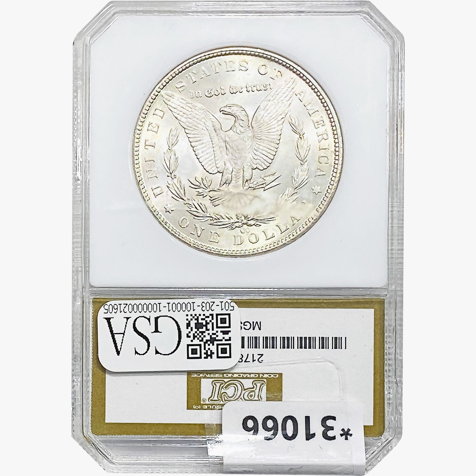 COINS AND CURRENCY LISTED IN GSA’S CATALOG AS GRADED AND ENCAPSULATED BY PCGS, NGC, ANACS, ICG, PCGS CURRENCY, PMG, PCGS BANKNOTE GRADING, CMC OR ANY OTHER THIRD-PARTY GRADING SERVICE ARE LIKEWISE SOLD “AS-IS” EXCEPT AS EXPRESSLY SET FORTH HEREIN. ALL THIRD-PARTY GRADING SERVICE GUARANTEES, INCLUDING AUTHENTICITY, ARE THE SOLE RESPONSIBILITY OF THE THIRD-PARTY GRADING SERVICE AND NOT WARRANTIES OR GUARANTEES OF GSA. BIDDERS SHOULD CONTACT THESE THIRD-PARTY GRADING SERVICES DIRECTLY WITH RESPECT TO ANY CLAIMS OR QUESTIONS THEY MAY HAVE CONCERNING THEIR GUARANTEES AND WARRANTIES. BIDDERS ACKNOWLEDGE AND AGREE THAT AUCTIONEER IS NOT BOUND BY OR LIABLE FOR ANY OPINION OR CERTIFICATION BY ANY THIRD-PARTY GRADING SERVICE. REMOVAL OF A PRODUCT FROM ITS PROTECTIVE CASING OR HOLDER OR ALTERATION OF ANY COIN HOLDER WAIVES ALL RIGHTS CONCERNING THE PRODUCT CONTAINED THEREIN.