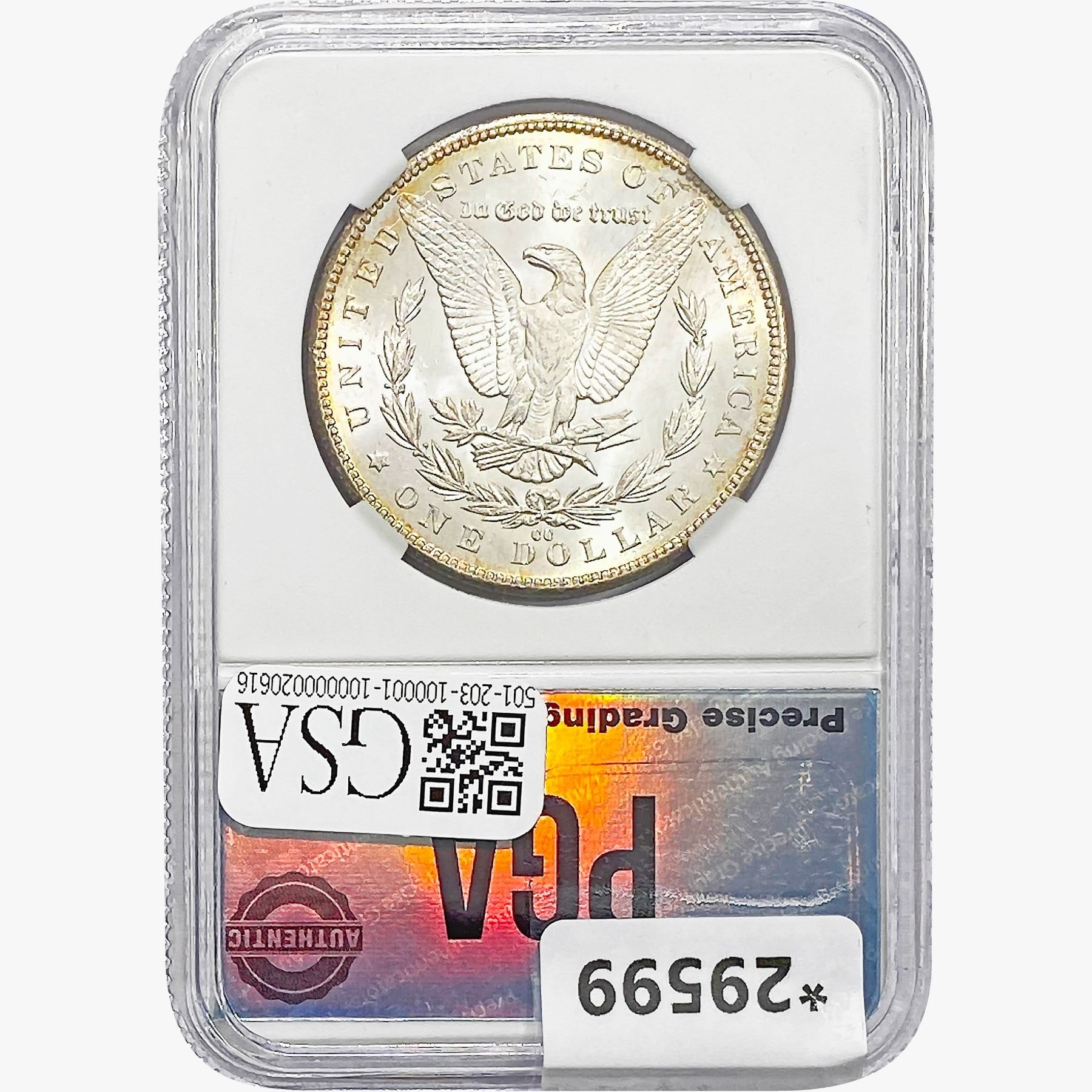COINS AND CURRENCY LISTED IN GSA’S CATALOG AS GRADED AND ENCAPSULATED BY PCGS, NGC, ANACS, ICG, PCGS CURRENCY, PMG, PCGS BANKNOTE GRADING, CMC OR ANY OTHER THIRD-PARTY GRADING SERVICE ARE LIKEWISE SOLD “AS-IS” EXCEPT AS EXPRESSLY SET FORTH HEREIN. ALL THIRD-PARTY GRADING SERVICE GUARANTEES, INCLUDING AUTHENTICITY, ARE THE SOLE RESPONSIBILITY OF THE THIRD-PARTY GRADING SERVICE AND NOT WARRANTIES OR GUARANTEES OF GSA. BIDDERS SHOULD CONTACT THESE THIRD-PARTY GRADING SERVICES DIRECTLY WITH RESPECT TO ANY CLAIMS OR QUESTIONS THEY MAY HAVE CONCERNING THEIR GUARANTEES AND WARRANTIES. BIDDERS ACKNOWLEDGE AND AGREE THAT AUCTIONEER IS NOT BOUND BY OR LIABLE FOR ANY OPINION OR CERTIFICATION BY ANY THIRD-PARTY GRADING SERVICE. REMOVAL OF A PRODUCT FROM ITS PROTECTIVE CASING OR HOLDER OR ALTERATION OF ANY COIN HOLDER WAIVES ALL RIGHTS CONCERNING THE PRODUCT CONTAINED THEREIN.