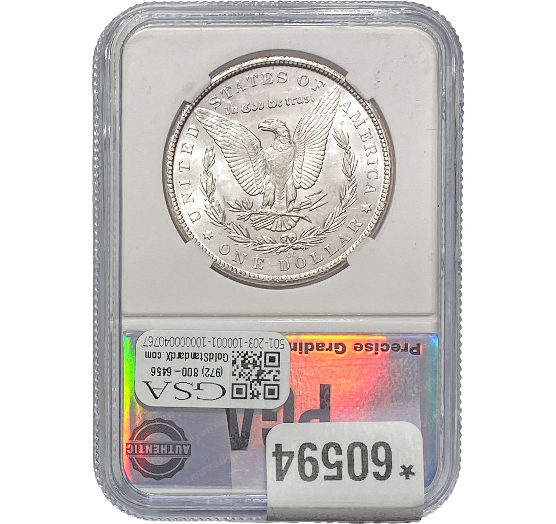 COINS AND CURRENCY LISTED IN GSA’S CATALOG AS GRADED AND ENCAPSULATED BY PCGS, NGC, ANACS, ICG, PCGS CURRENCY, PMG, PCGS BANKNOTE GRADING, CMC OR ANY OTHER THIRD-PARTY GRADING SERVICE ARE LIKEWISE SOLD “AS-IS” EXCEPT AS EXPRESSLY SET FORTH HEREIN. ALL THIRD-PARTY GRADING SERVICE GUARANTEES, INCLUDING AUTHENTICITY, ARE THE SOLE RESPONSIBILITY OF THE THIRD-PARTY GRADING SERVICE AND NOT WARRANTIES OR GUARANTEES OF GSA. BIDDERS SHOULD CONTACT THESE THIRD-PARTY GRADING SERVICES DIRECTLY WITH RESPECT TO ANY CLAIMS OR QUESTIONS THEY MAY HAVE CONCERNING THEIR GUARANTEES AND WARRANTIES. BIDDERS ACKNOWLEDGE AND AGREE THAT AUCTIONEER IS NOT BOUND BY OR LIABLE FOR ANY OPINION OR CERTIFICATION BY ANY THIRD-PARTY GRADING SERVICE. REMOVAL OF A PRODUCT FROM ITS PROTECTIVE CASING OR HOLDER OR ALTERATION OF ANY COIN HOLDER WAIVES ALL RIGHTS CONCERNING THE PRODUCT CONTAINED THEREIN.