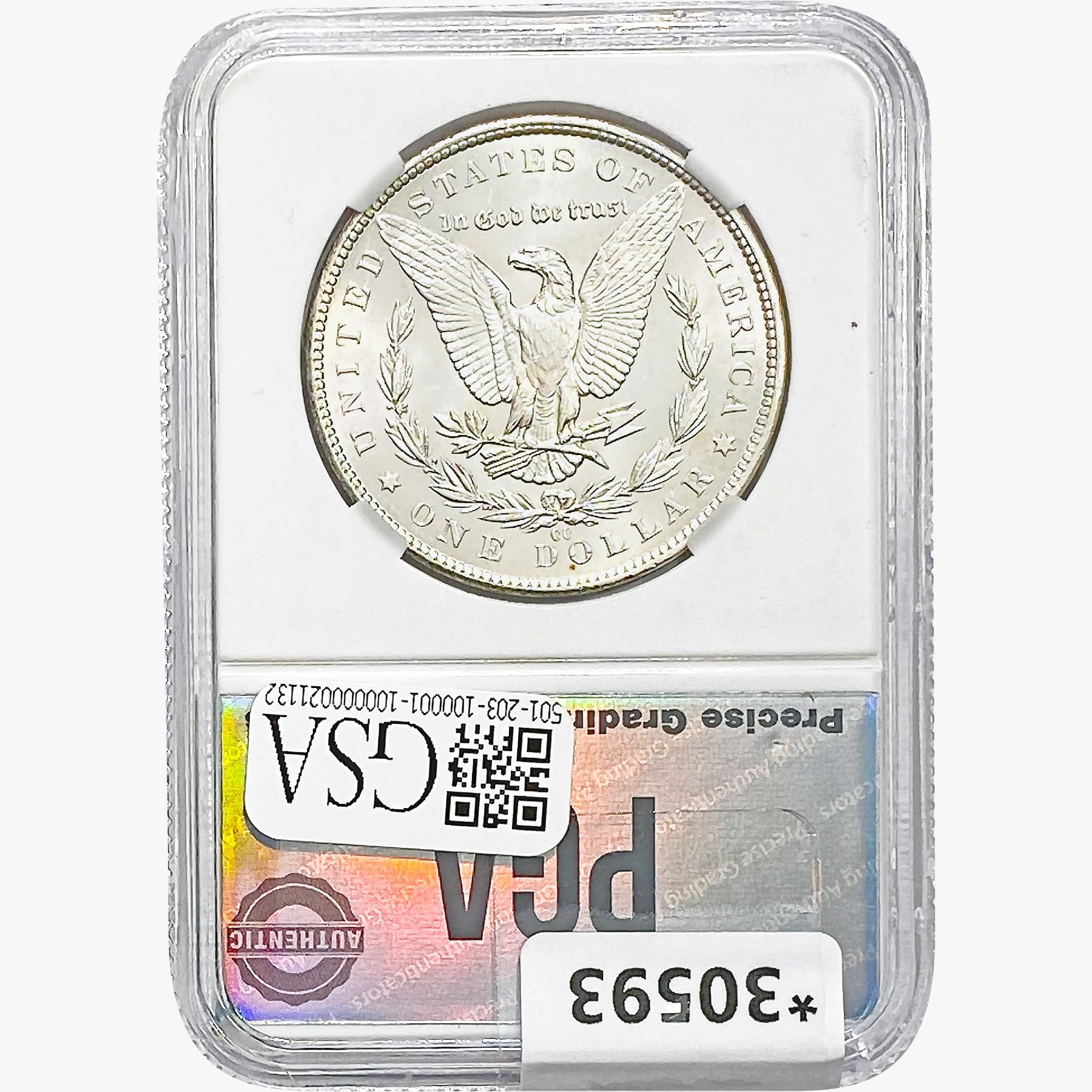 COINS AND CURRENCY LISTED IN GSA’S CATALOG AS GRADED AND ENCAPSULATED BY PCGS, NGC, ANACS, ICG, PCGS CURRENCY, PMG, PCGS BANKNOTE GRADING, CMC OR ANY OTHER THIRD-PARTY GRADING SERVICE ARE LIKEWISE SOLD “AS-IS” EXCEPT AS EXPRESSLY SET FORTH HEREIN. ALL THIRD-PARTY GRADING SERVICE GUARANTEES, INCLUDING AUTHENTICITY, ARE THE SOLE RESPONSIBILITY OF THE THIRD-PARTY GRADING SERVICE AND NOT WARRANTIES OR GUARANTEES OF GSA. BIDDERS SHOULD CONTACT THESE THIRD-PARTY GRADING SERVICES DIRECTLY WITH RESPECT TO ANY CLAIMS OR QUESTIONS THEY MAY HAVE CONCERNING THEIR GUARANTEES AND WARRANTIES. BIDDERS ACKNOWLEDGE AND AGREE THAT AUCTIONEER IS NOT BOUND BY OR LIABLE FOR ANY OPINION OR CERTIFICATION BY ANY THIRD-PARTY GRADING SERVICE. REMOVAL OF A PRODUCT FROM ITS PROTECTIVE CASING OR HOLDER OR ALTERATION OF ANY COIN HOLDER WAIVES ALL RIGHTS CONCERNING THE PRODUCT CONTAINED THEREIN.