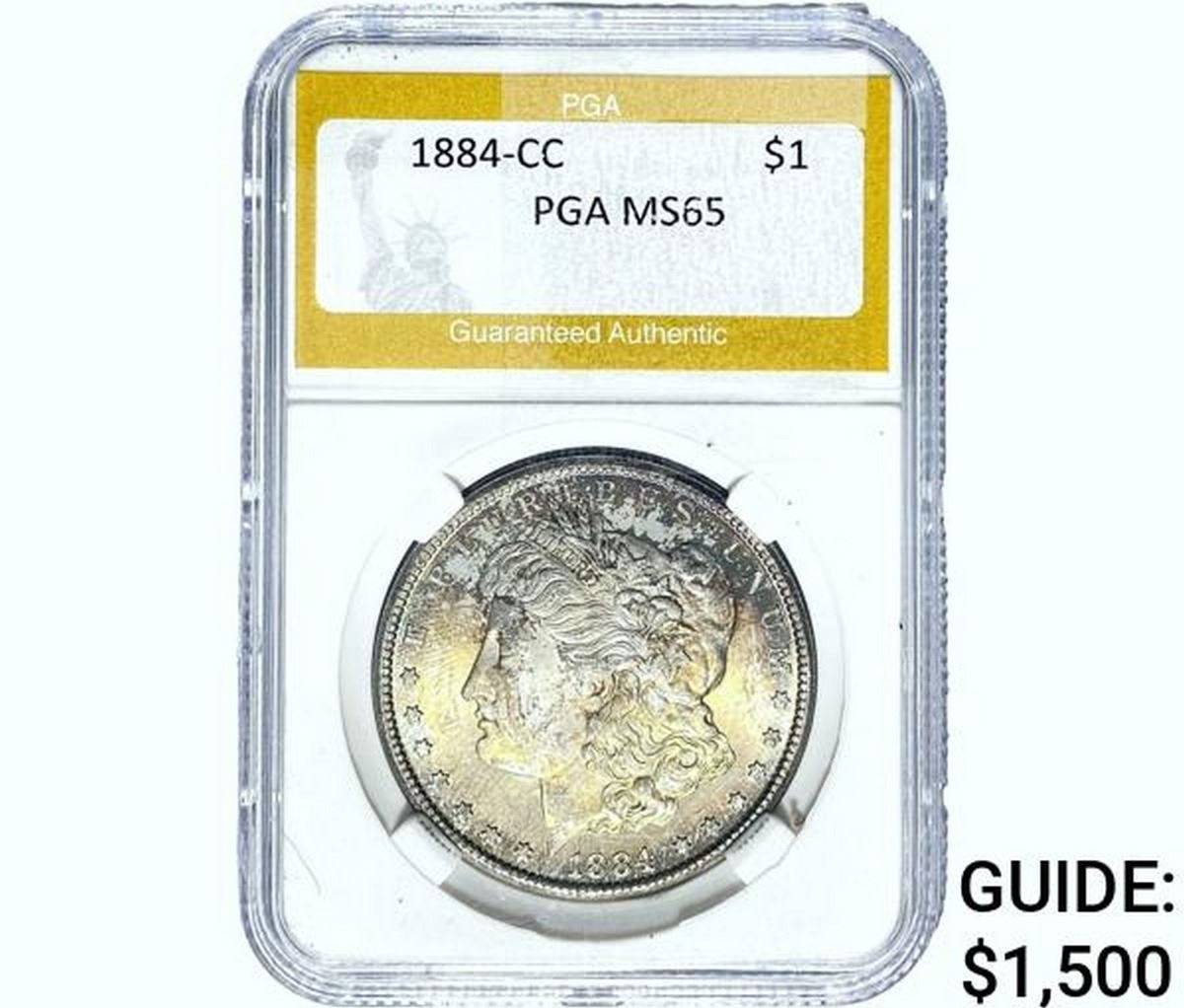 COINS AND CURRENCY LISTED IN GSA’S CATALOG AS GRADED AND ENCAPSULATED BY PCGS, NGC, ANACS, ICG, PCGS CURRENCY, PMG, PCGS BANKNOTE GRADING, CMC OR ANY OTHER THIRD-PARTY GRADING SERVICE ARE LIKEWISE SOLD “AS-IS” EXCEPT AS EXPRESSLY SET FORTH HEREIN. ALL THIRD-PARTY GRADING SERVICE GUARANTEES, INCLUDING AUTHENTICITY, ARE THE SOLE RESPONSIBILITY OF THE THIRD-PARTY GRADING SERVICE AND NOT WARRANTIES OR GUARANTEES OF GSA. BIDDERS SHOULD CONTACT THESE THIRD-PARTY GRADING SERVICES DIRECTLY WITH RESPECT TO ANY CLAIMS OR QUESTIONS THEY MAY HAVE CONCERNING THEIR GUARANTEES AND WARRANTIES. BIDDERS ACKNOWLEDGE AND AGREE THAT AUCTIONEER IS NOT BOUND BY OR LIABLE FOR ANY OPINION OR CERTIFICATION BY ANY THIRD-PARTY GRADING SERVICE. REMOVAL OF A PRODUCT FROM ITS PROTECTIVE CASING OR HOLDER OR ALTERATION OF ANY COIN HOLDER WAIVES ALL RIGHTS CONCERNING THE PRODUCT CONTAINED THEREIN.