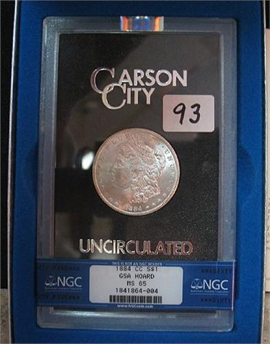 1884-CC Morgan Silver Dollar in GSA Holder NGC MS 65