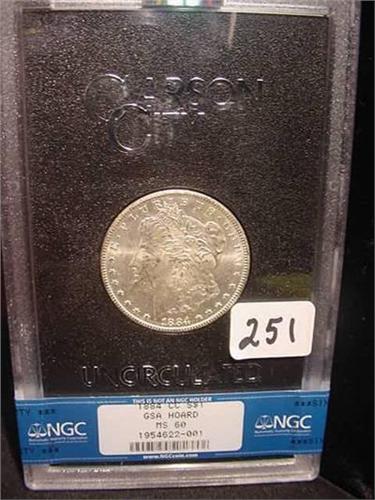 1884-CC Morgan Silver Dollar in GSA Holder NGC MS 60