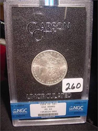 1884-CC Morgan Silver Dollar in GSA Holder NGC MS 62