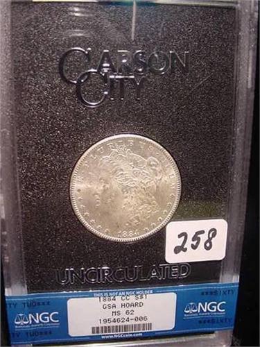 1884-CC Morgan Silver Dollar in GSA Holder NGC MS 62