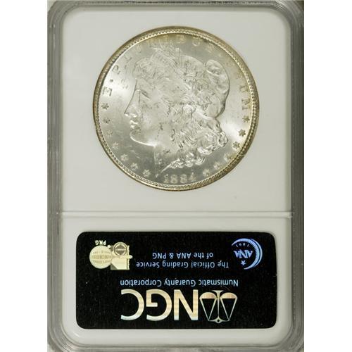 1884-CC S$1 MS63 S NGC, two pieces, each highly lustr