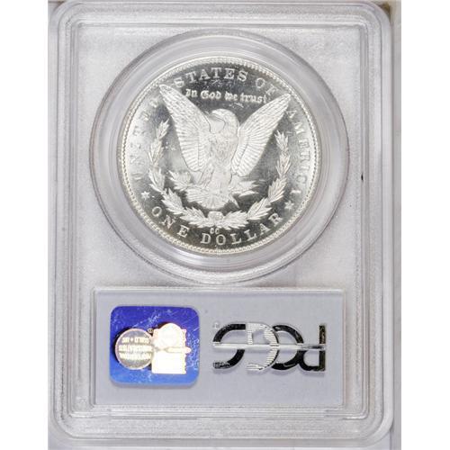 <B>1884-CC<img border='0' src='http://www.heritagecoins.com/images/star.gif' width=10 height=10>$1> MS64 Deep Mirror Prooflike PCGS.</B></I> Frosty and mostly brilliant, with some milky patina around the eagle. The luster and strike are superior, even considering this issue. Abrasions near Liberty's cheek limit the grade.<BR><I>From The Chicago-Ark Collection.</B></I>