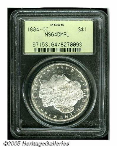 <B>1884-CC<S$1> MS64 Deep Mirror Prooflike PCGS.</B></I> One of the more available CC-mint issues with this combination of surface preservation and finish, the present example is, nonetheless, a beautiful coin. Smartly impressed, the heavily frosted surfaces contrast nicely with the deeply mirrored fields. Free of all but the most trivial contact marks, the smooth surfaces would do justice to an even higher grade.