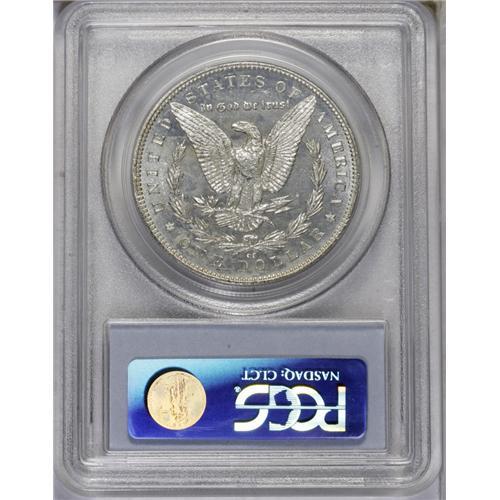 <B>1884-CC<img border='0' src='http://www.heritagecoins.com/images/star.gif' width=10 height=10>$1> MS64 Deep Mirror Prooflike PCGS.</B></I> The 18 in the date is recut. The exceedingly glassy fields are only slightly subdued by scattered milkiness on each side. Die erosion and die rust leave the eagle's breast incompletely struck. A flashy and mildly abraded near-Gem.