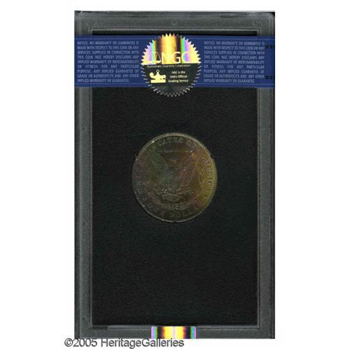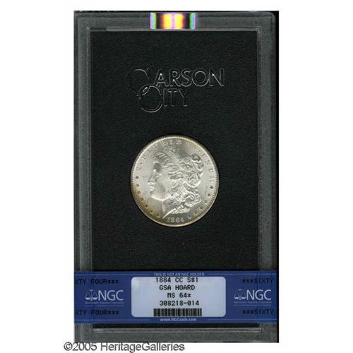 <B>1884-CC<S$1> MS64 <S NGC.</B></I> Dazzling ruby-red, lemon, and forest-green colors illuminate the reverse. The obverse has a brief band of peripheral honey color along the lower left, but is otherwise nearly untoned. Crisply struck and well preserved aside from the expected minor cheek and neck grazes. <BR><BR><B>Important no