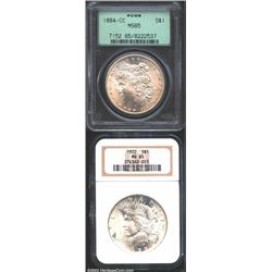 1884-CC S$1 MS65 PCGS, the surfaces are gorgeous; and a 1922 MS65 NGC, a minor reeding mark in the t