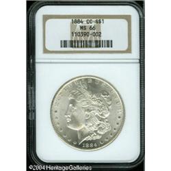 1884-CC S$1 MS66 NGC. Brilliant and highly lustrou <B>1884-CC S$1 MS66 NGC.</B></I> Brilliant and highly lustrous with creamy surfaces that show no obvious or distracting abrasions. <BR><BR><B>Important notice:</B> Heritage usually auctions material at the rate of 200-250 lots per hour. On some occasions eBay Live bid software or the Internet may not be able to keep up with the pace of the auction. We recommend placing a realistic absentee bid now as insurance to avoid disappointment. Occasionally the auctioneer may eliminate or reject an eBay Live bid, and the auctioneer may also reopen a lot after the close of the eBay live bidding (usually because we missed an audience bid), and may reject your bid even if it shows you as the winning bidder. By bidding via eBay Live, you agree that Heritage may award the lot to another bidder at its sole discretion under the circumstances described above or any other reasonable circumstances. Since eBay bids are not shown to us until we open the lot on the floor, we treat those bids just like floor bids. In most cases the floor responds before the eBay bid is presented to us, due to Internet lag time, so for consistency we have made it a policy that floor bids are always considered first over tie eBay live bids. Also please note that all Heritage lots purchased through eBay Live carry a 20% Buyer's Premium. Please make sure you read the Terms and Conditions before you bid. This lot is being auctioned in conjunction with a live floor auction by Heritage Galleries & Auctioneers. All final auction and invoice information will be supplied by Heritage Galleries & Auctioneers, and all other information should be considered preliminary. Lot:7475