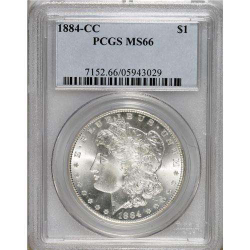 1884-CC S$1 MS66 PCGS. A wisp of chestnut toning on th