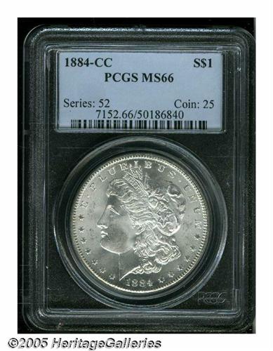 <B>1884-CC<S$1> MS66 PCGS.</B></I> Brilliant and lustrous with bright silver surfaces and excellent eye appeal.
