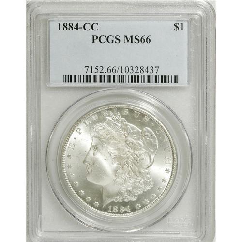 1884-CC S$1 MS66 PCGS. Highly lustrous surfaces give o