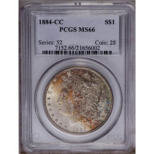 1884-CC S$1 MS66 PCGS. Splashes of burnt-orange, crims 1884-CC[img border='0' src='http://www.herita