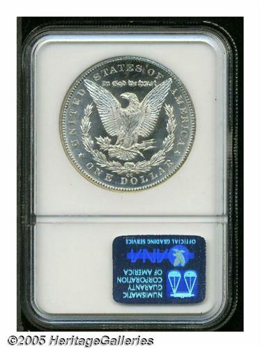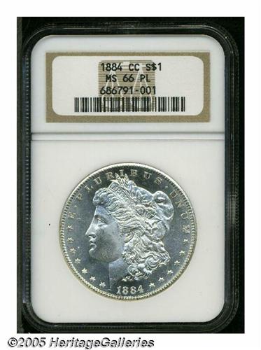 <B>1884-CC<S$1> MS66 Prooflike NGC.</B></I> This is a sensational example with brilliant and frosty surfaces and bright snow-white color. The fields are reflective with light cameo contrast. All of the design features are well brought up. Population: 39 in 66, 6 finer (6/05).
