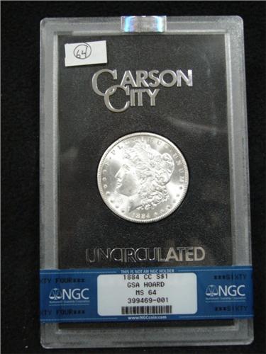 1884-CC U.S. MORGAN SILVER DOLLAR. Graded by NGC. GSA Hoard. MS 64.