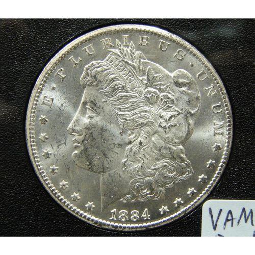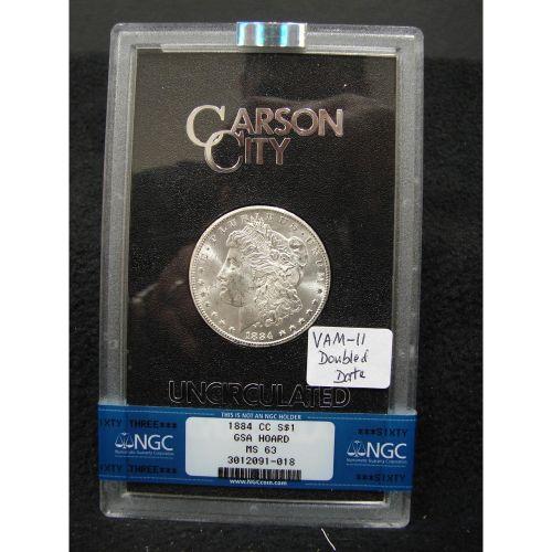 1884-CC U.S. MORGAN SILVER DOLLAR. GSA Hoard. MS 63. Graded by NGC. VAM-11. Doubled date. In case with box.