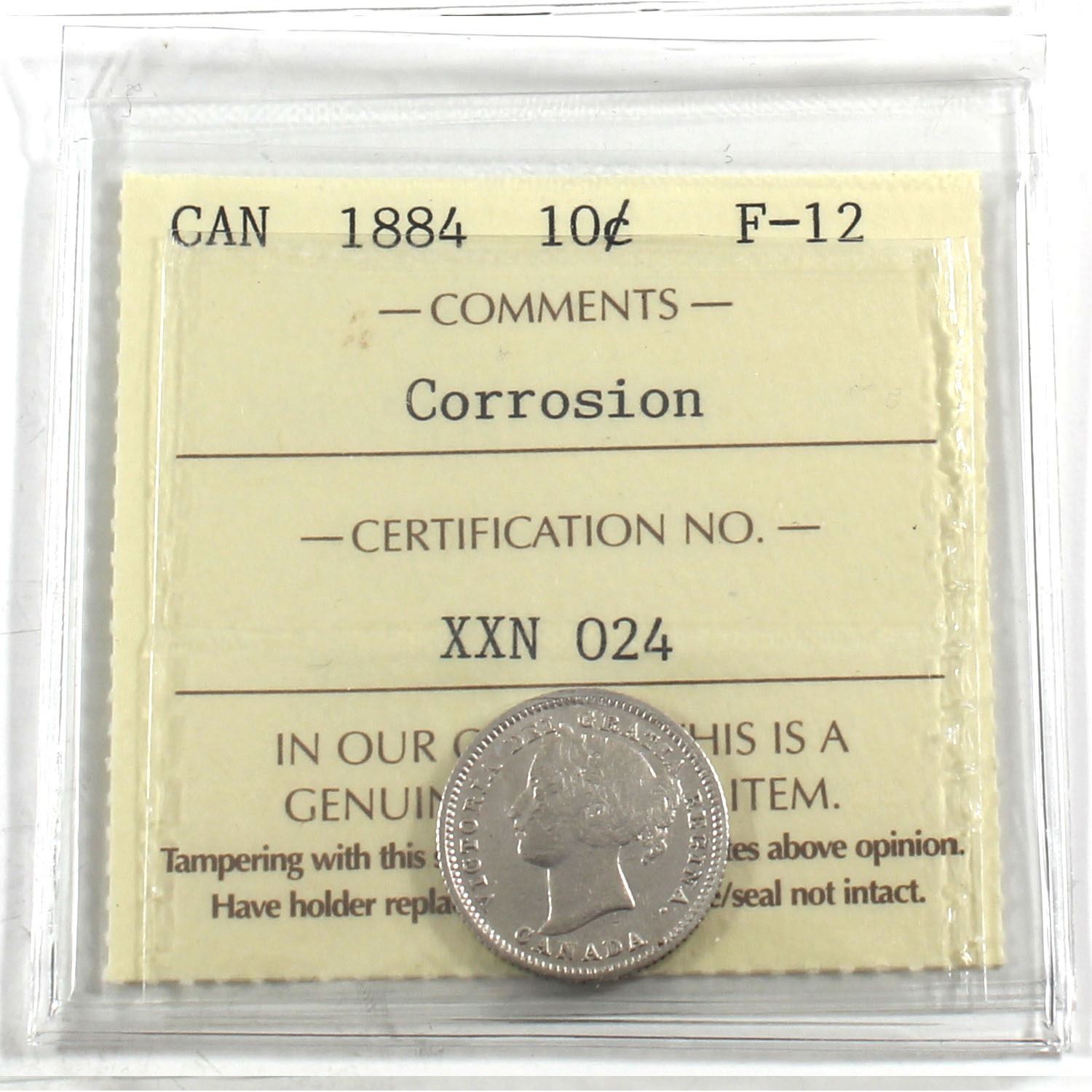 1884 Canada 10-cent ICCS Certified F-12 (Corrosion)