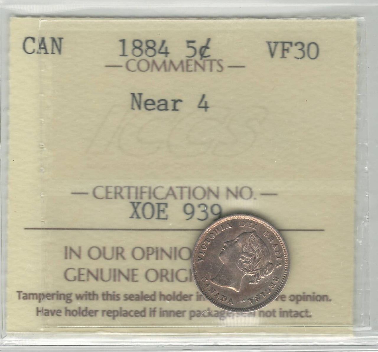 1884 Canada 5 Cent Near 4 ICCS VF 30