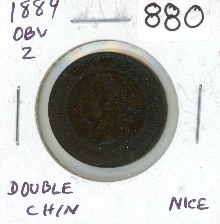 1884 Canadian Victorian Large Cent. Obverse 2 (Double Chin). VF-30. Nice.