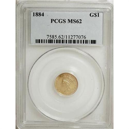 <B>1884 G$1 MS62 PCGS.</B></I> PCGS Population (43/156). NGC Census: (30/118). Mintage: 5,200. Numismedia Wsl. Price for NGC/PCGS coin in MS62: $480. (#7585)<BR><BR><B>Coin Engraver:</B> James B. Longacre<BR><BR><b>Shipping:</b> Coins & Currency (<a target="_blank" href="http://www.heritageauctions.com/common/shipping.php">view shipping information</a>)