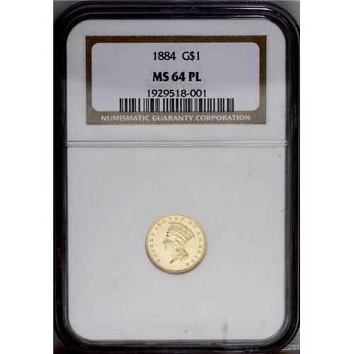 1884 G$1 MS64 Prooflike NGC. The fields are decidedly 1884[G$1] MS64 Prooflike NGC.