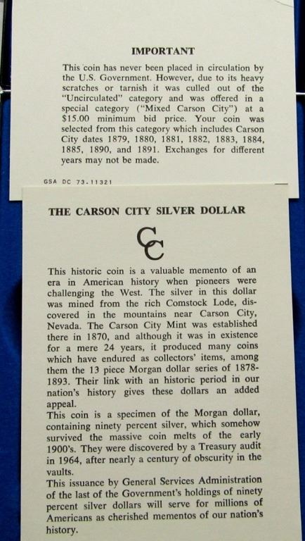 1884 GSA CARSON CITY MORGAN SILVER DOLLAR
