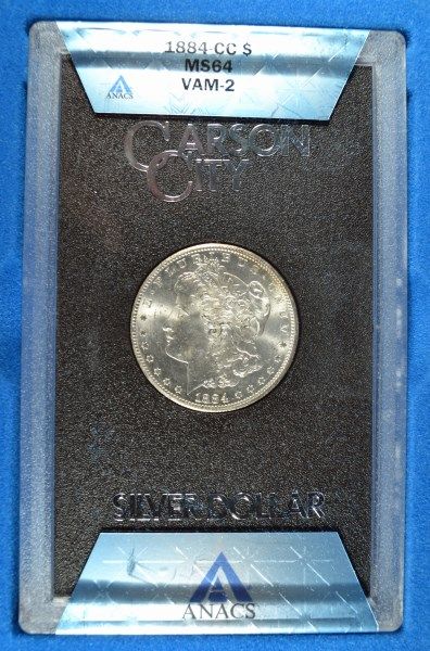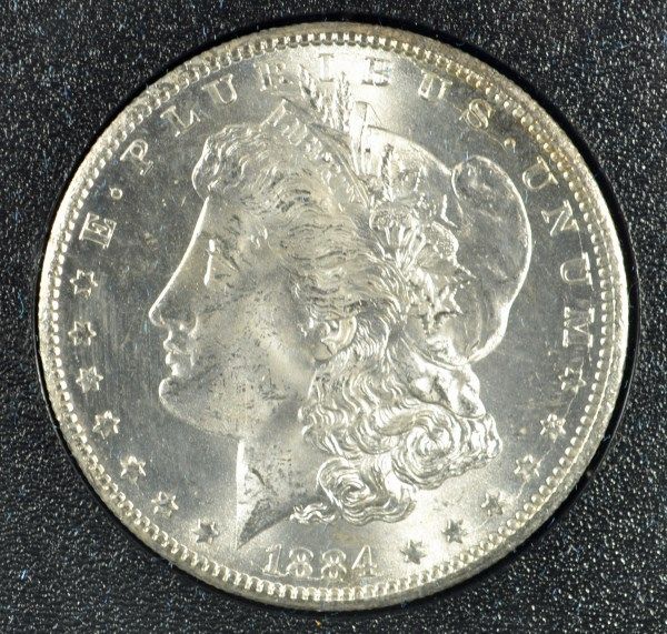 1884 GSA MORGAN SILVER DOLLAR, ANACS MS-64 WITH BOX NO CERTIFICATE
