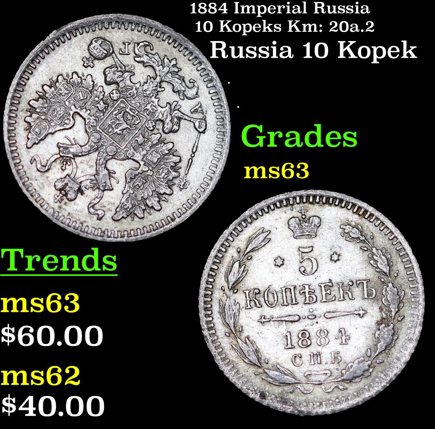 1884 Imperial Russia 10 Kopeks Km: 20a.2 Grades Select Unc.