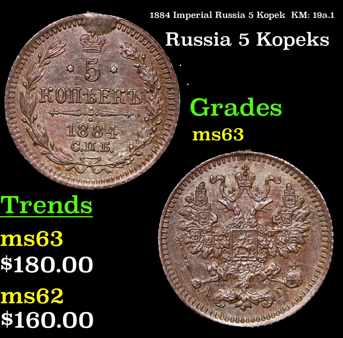 1884 Imperial Russia 5 Kopek KM: 19a.1 Grades Select Unc.